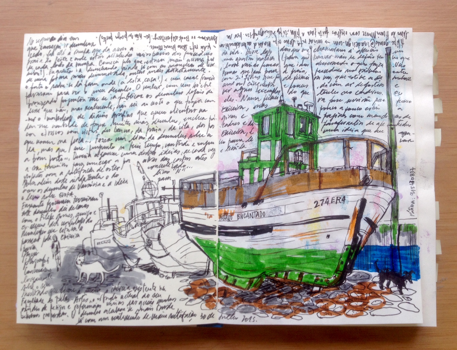 Vagueei tanto pelas folhas destes cadernos que costumo pensar que até as páginas que estão em branco guardam aquilo que não arrisquei dizer. Fruto de um acaso, como tantos outros com que esbarramos no decurso de uma vida, comecei a desenhar em cadernos por razões profissionais alheias ao que me motiva hoje para continuar.