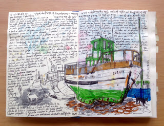 Desenhar neles deixou de ser uma tarefa auto-imposta para passar a ser espaço e tempo de liberdade. Uma liberdade feita de quatro esquinas de papel onde me perco e reencontro a cada momento. Quando termino um destes cadernos, fecho-o e guardo-o sem tenção de o voltar a folhear. Agora voltam a abrir-se em uníssono, deixando a descoberto as linhas com que inadvertidamente mapeei as minhas vivências. Procurando talvez criar a ilusão que a vida pudesse caber neles.